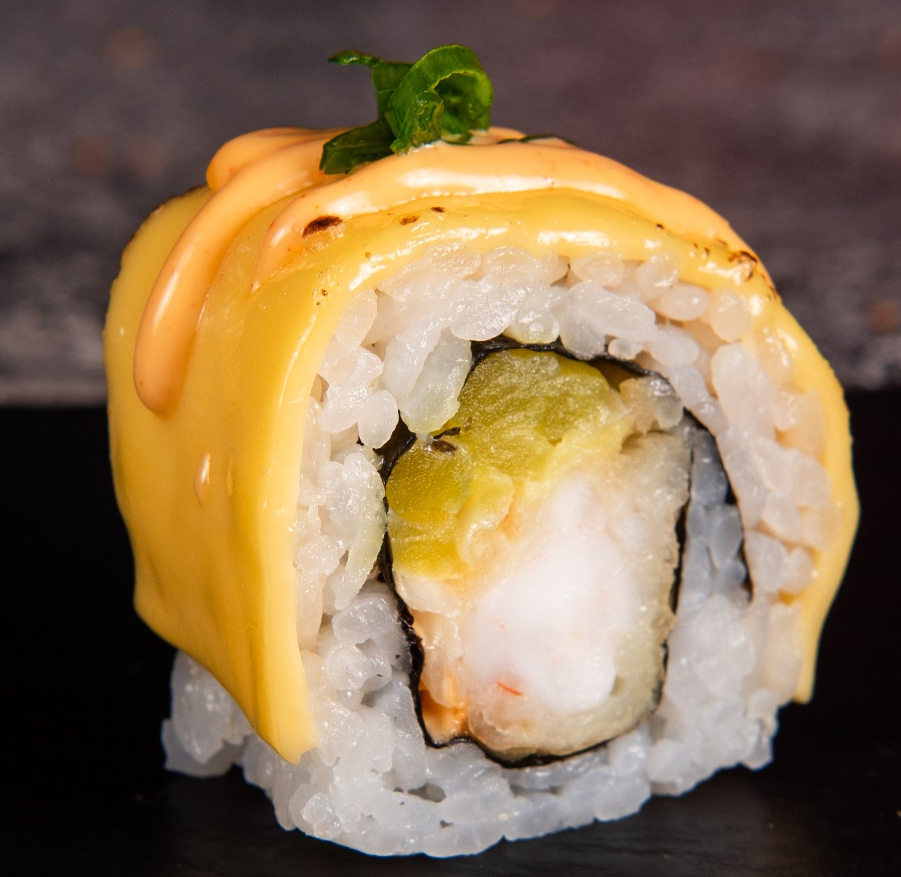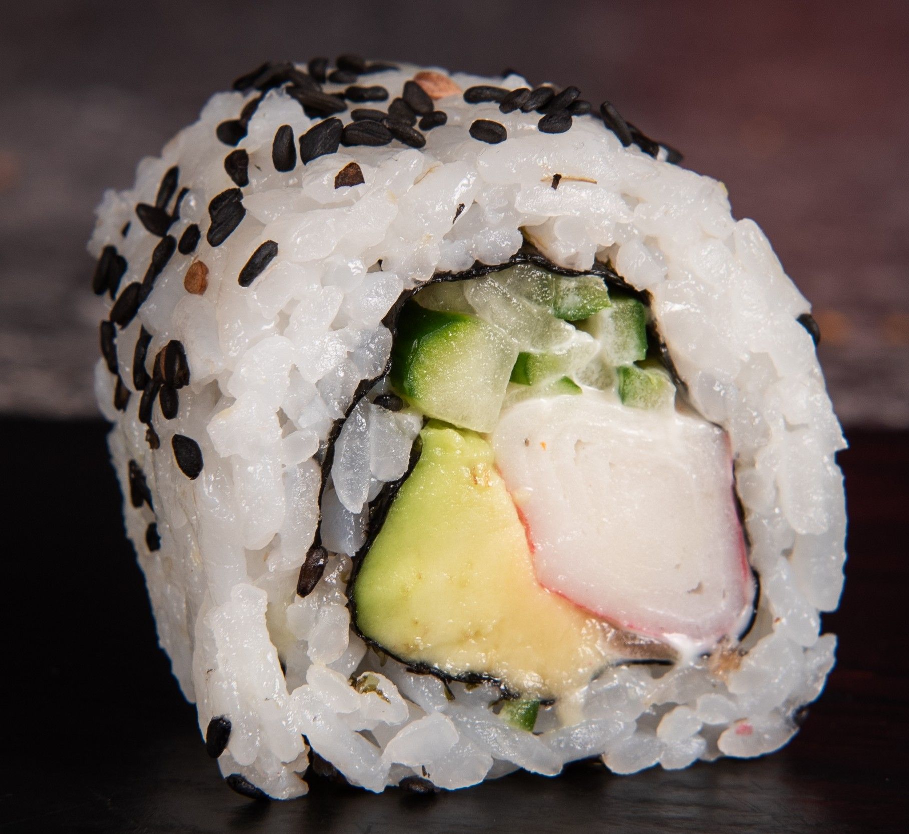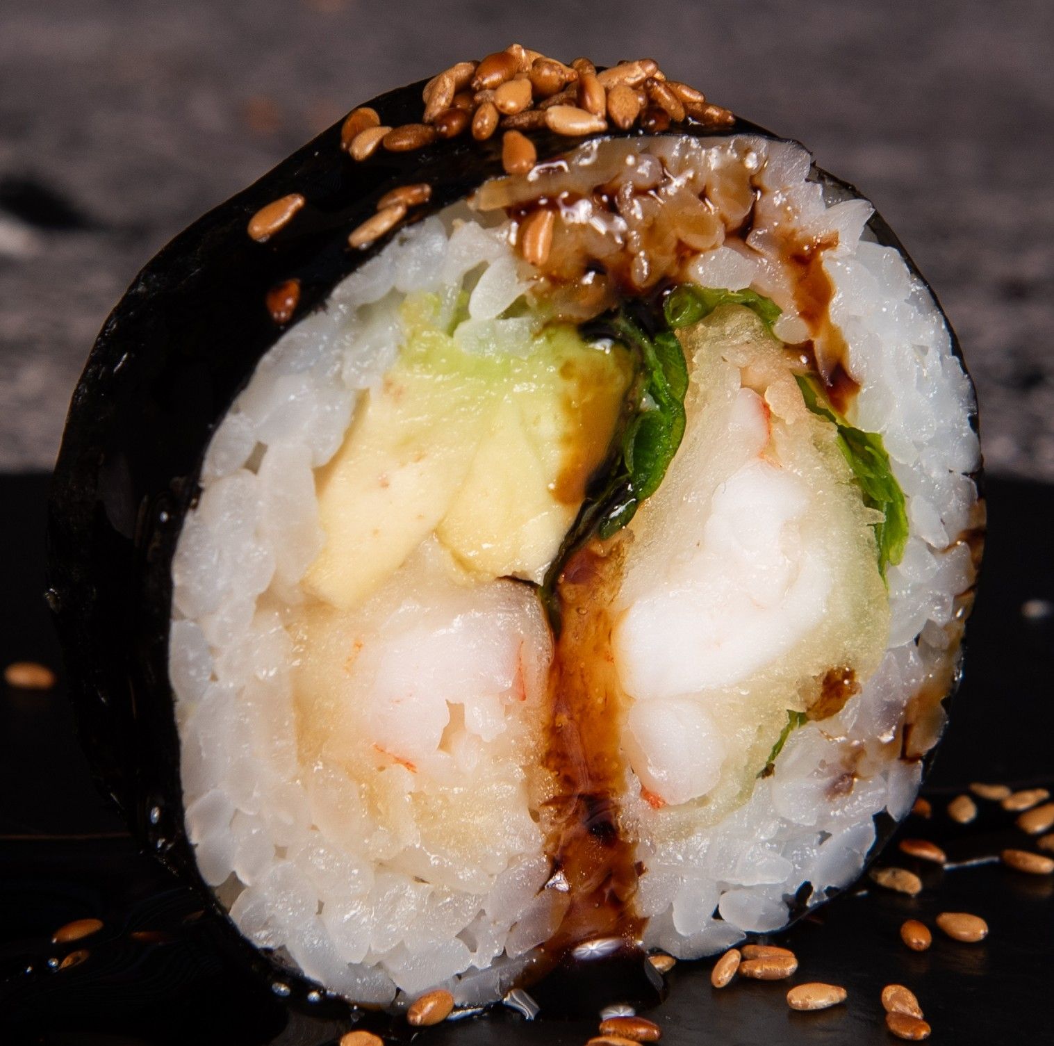 ogórek, awokado, majonez, sos kabayaki, sezam -