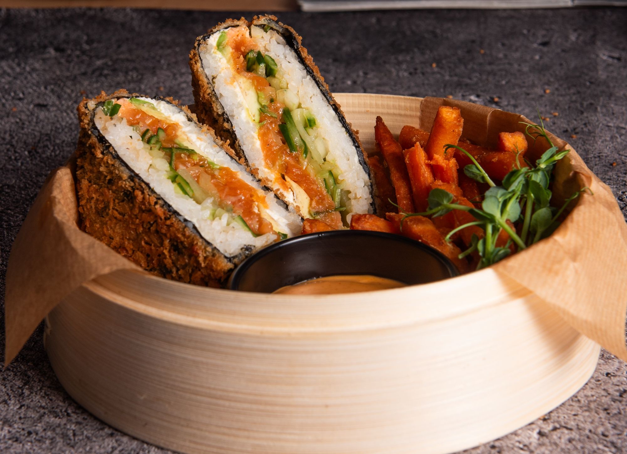 8x uramaki z krewetkami w panko oraz tatarem z łososia