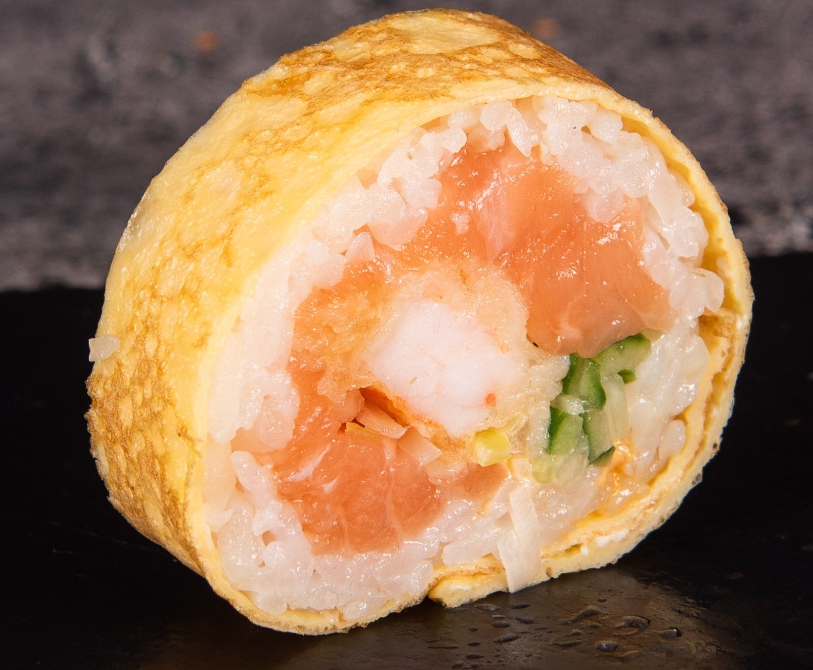 6x futomaki wegetariańskie z omletem japońskim (ogórek, rzodkiew, groszek cukrowy, serek, sałata)