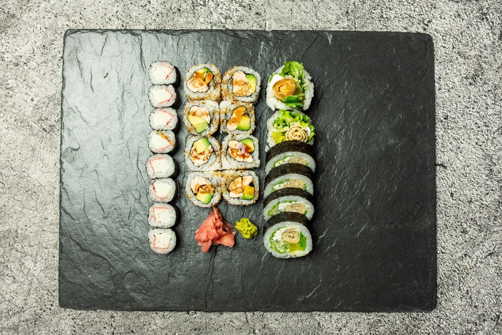 kizami, awokado, rzodkiew marynowana, ogórek, serek