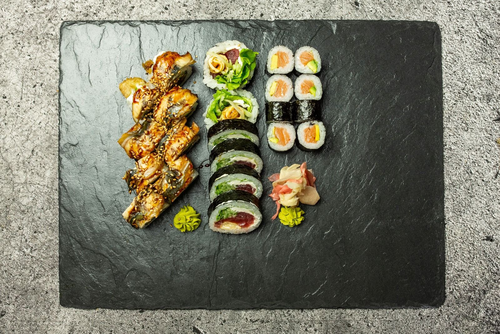 6x futomaki z grillowaną rybą maślaną oraz węgorzem (awokado, tykwa, majonez, sos kabayaki, sezam)